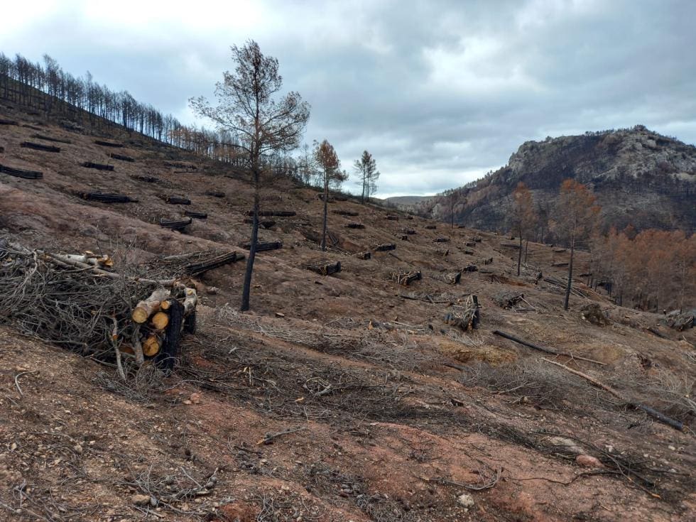 Esto, unido a las elevadas pendientes y a las lluvias torrenciales que caen en la Comunitat Valenciana en otoño, recomienda realizar una serie de intervenciones inmediatas para mitigar la erosión, reducir la escorrentía superficial, con el fin de prevenir posibles inundaciones aguas abajo de la zona incendiada, y actuar sobre la vegetación, para garantizar su adecuada regeneración.