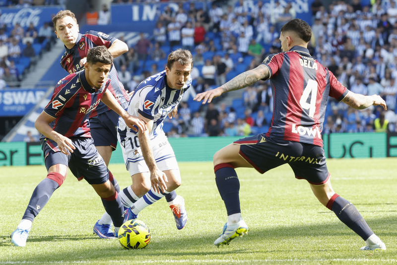 El Levante era incapaz de mantener el balón en campo contrario y los donostiarras se sentían cómodos. Oyarzabal estuvo a punto de marcar en otra jugada trenzada en el interior del área, pero un defensor del Levante lo impidió.