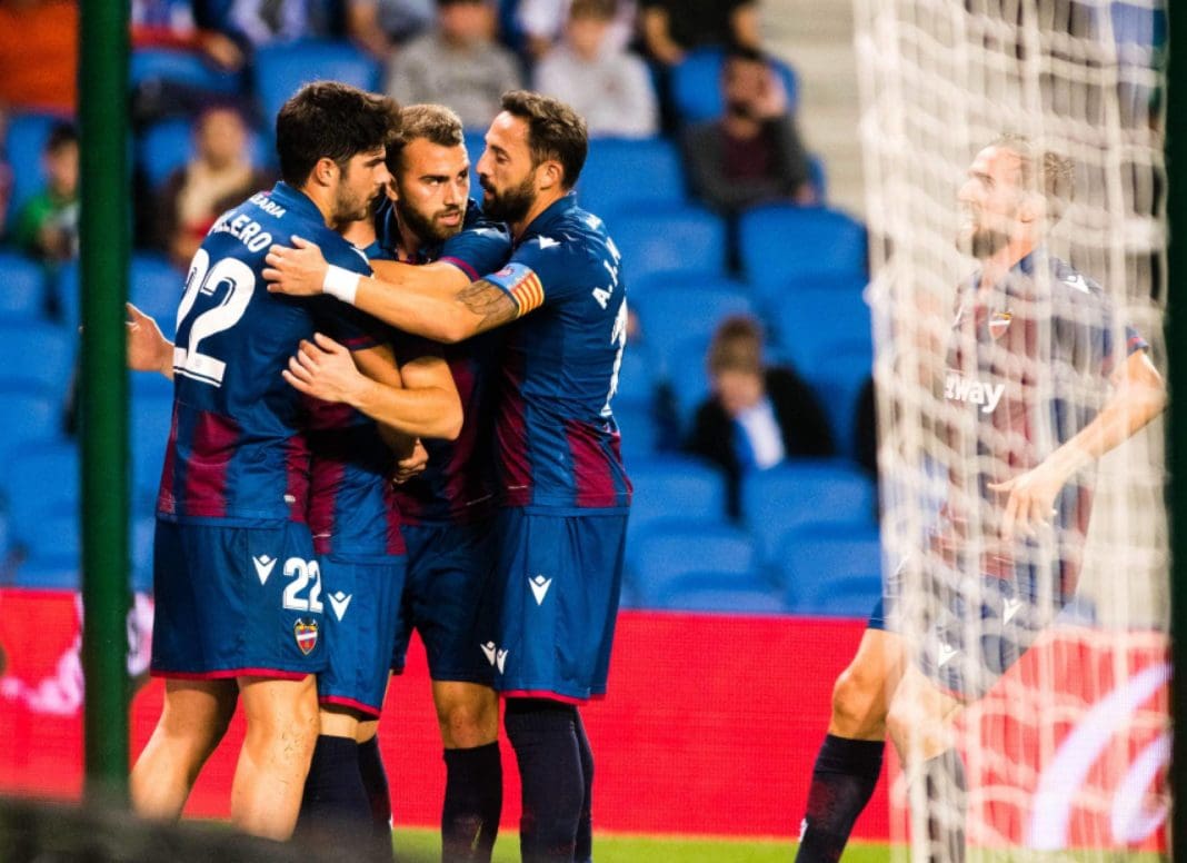 Els de Paco López van saltar al verd del Reale Arena amb l’ímpetu de dominar la trobada. Arribats al minut deu, Mayoral, Morals i finalment Melero ja havien avisat al meta local del vendaval granota que estava en camí. Aquest últim va forçar un servei de cantonada en el qual el Levante UD va veure un gol anul·lat després d’un fora de joc posicional de Radoja.