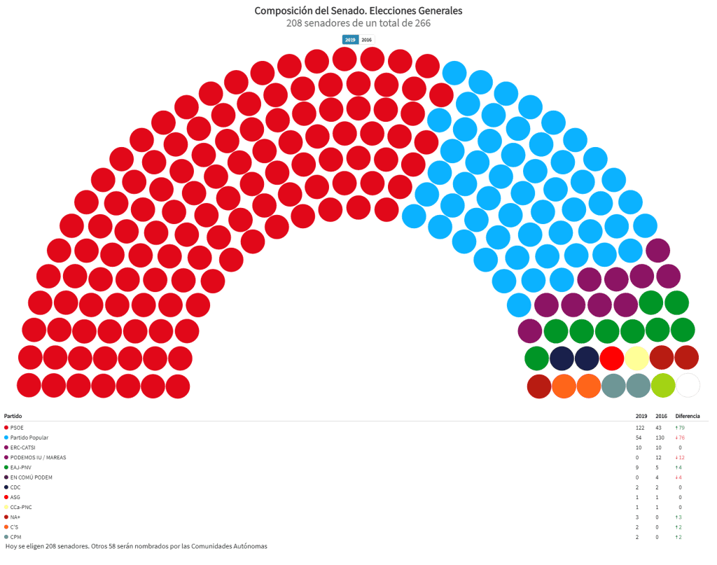 El PSOE recupera el control del Senat mediat l’escrutini Por Santiago Calaforra - 28 de abril de 2019 948