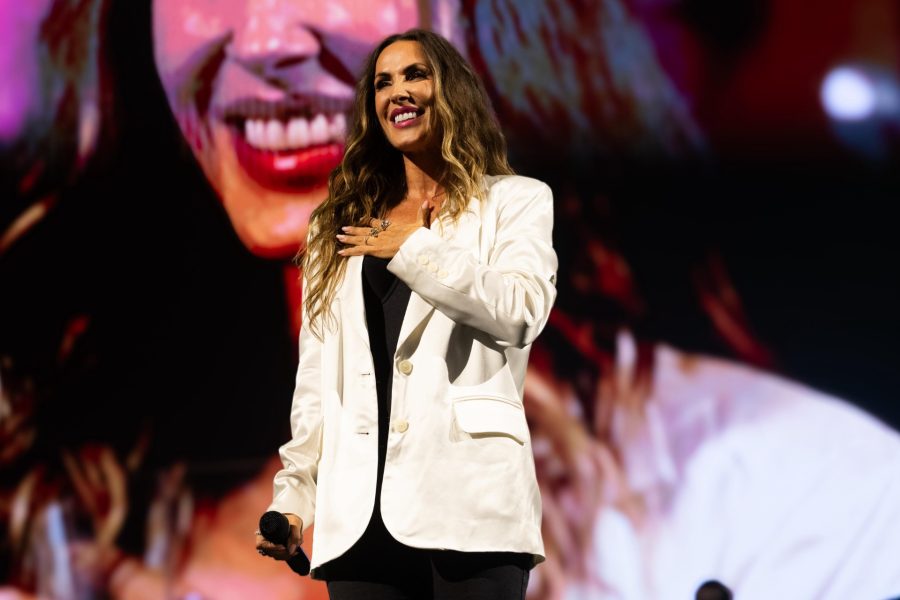 La primera artista en subirse al escenario ya con el público impactado tras la apertura ha sido Malú, que con su voz inconfundible y una enorme sensibilidad ha interpretado el tema Mi gran amor, bajo el marco de esta colosal producción.