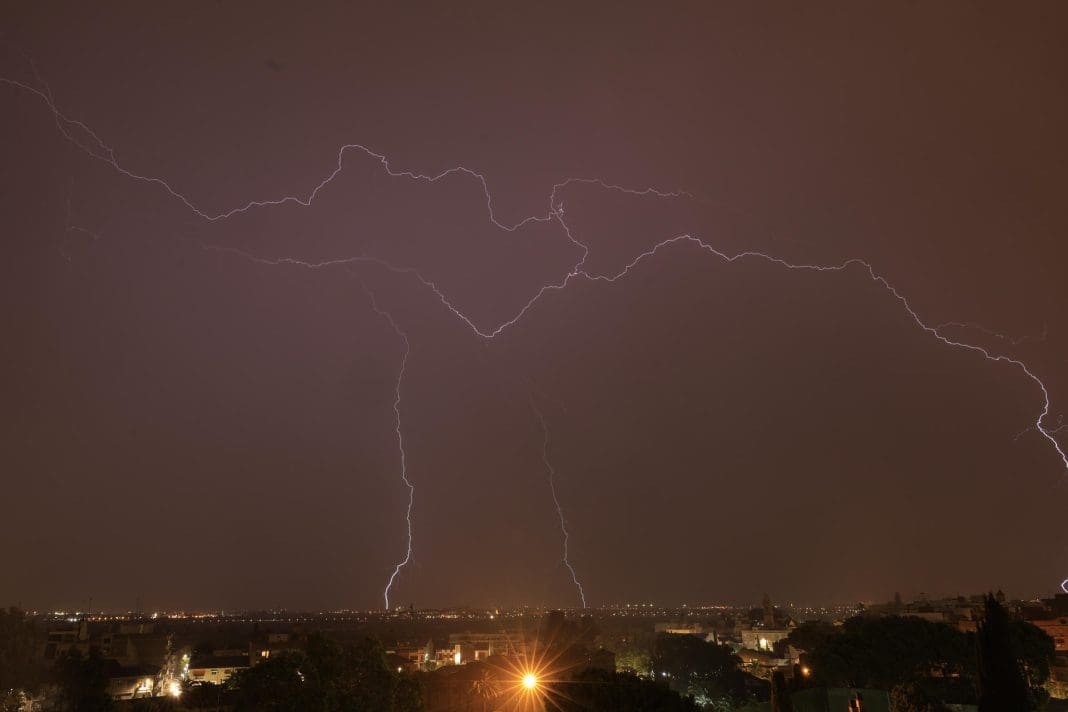 El temporal de rayos y viento obliga a desalojar una fiesta en el Ágora del Parc Central de Torrent