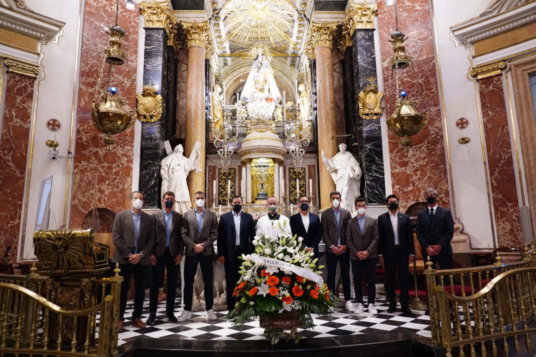 El Valencia CF ha realizado ayer la visita oficial a la Basílica de la Virgen de los Desamparados, donde representantes del club han realizado la tradicional ofrenda floral a la Mare de Déu antes del inicio de la temporada.