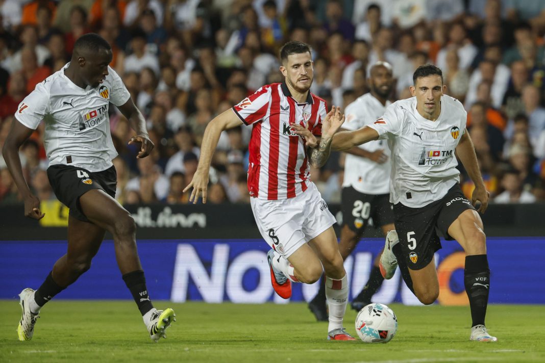 El Valencia se impuso por 2-0 al Athletic este sábado en Mestalla liderado por el centrocampista francés Baptiste Santamaría, quien provocó la expulsión de Vivian, marcó el primer gol y asistió en el segundo a Hugo Duro ya en el tiempo añadido.