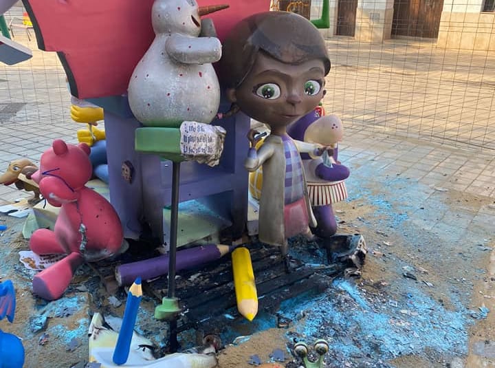 Los falleros han calificado a los autores de «personas sin corazón». Pese al ataque la falla » ha logrado resistir porque sabe que no ha llegado su hora; porque sabe que será el domingo cuando le toque quemar para dar por finalizado este ejercicio, lleno de incertidumbre, y dejar paso a las fallas de 2022 «, resaltaron desde la comisión.