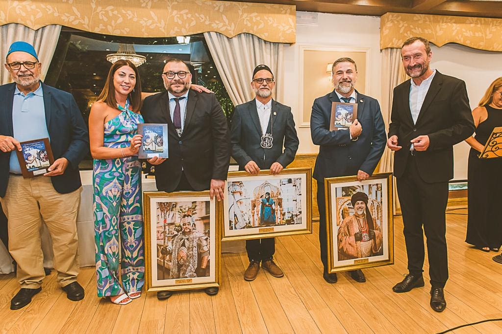 Para finalizar el acto el alcalde y la concejala felicitaron e hicieron entrega de las distinciones al presidente de la Asociación, Julián Fernández, al Rey Jaume I, Emilio Domenech, así como a los cargos salientes, a Esteban Canals como ‘Abanderado’; a Justo Alacid Miralles como ‘Capitán Cristiano’ y a José Eugenio Najas como ‘Capitán Moro’.