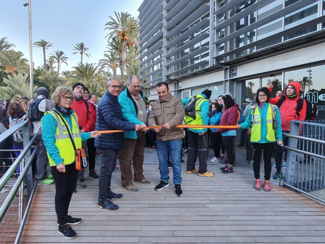 Vicente Alberola, regidor d’Esports i Pedanies; Ramón Abad, edil de Seguretat; i Martínez Tenllado, president de l’Ateneu de la Policia Local, han donat este matí en el Centre de Congressos l’eixida a la VI Ruta de les Ermites, que enguany compta amb la participació de més de 200 persones.