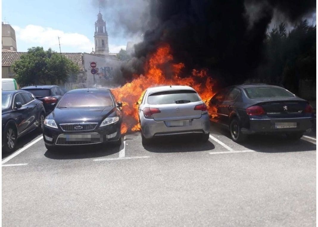 Un incendi de vehicles en Sueca que ha començat sobre les 14.42 i on s’han mobilitzat els bombers de Cullera i Silla ha deixat 9 vehicles calcinats en un pàrquing obert on hi havia uns 50 turismes estacionats.