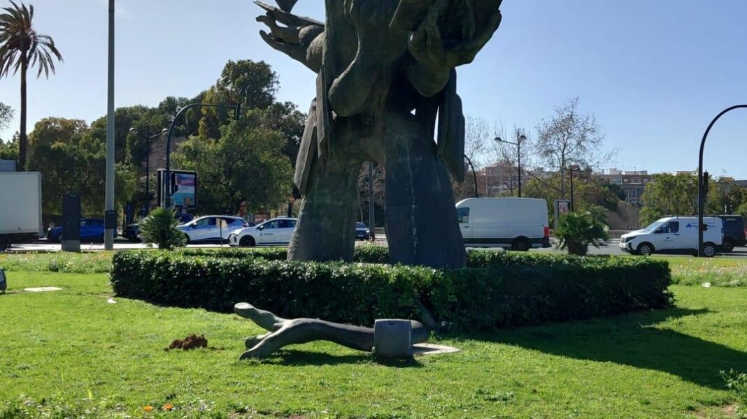 Según las fuentes, la escultura afectada, hecha de bronce y con un peso de unas catorce toneladas, está situada en la rotonda del final de la Alameda con la avenida Peris y Valero.