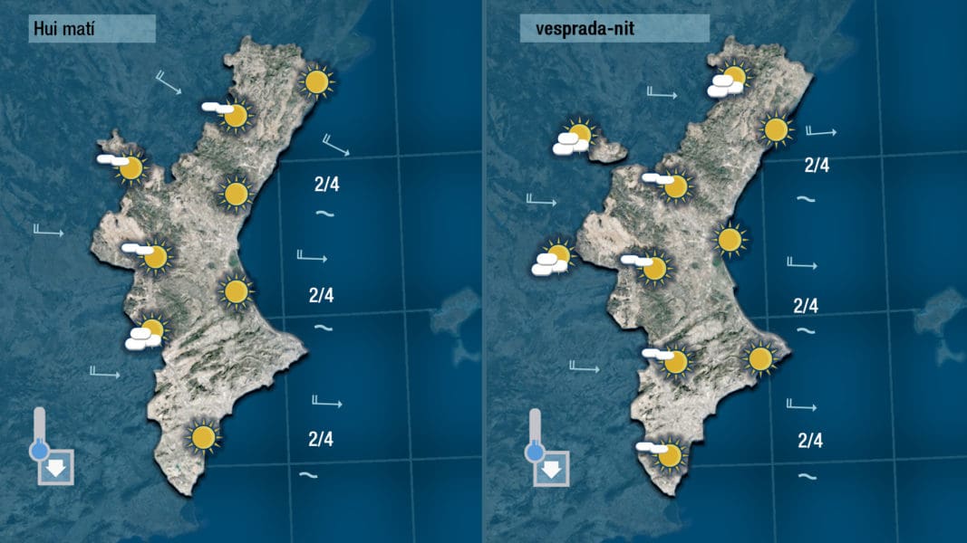 Al habernos cruzado un pequeño frente, la masa de aire que tenemos hoy encima de nosotros es un poco más fresca y esto hará que las temperaturas bajen un par de grados. Han sido más bajas por la noche y también lo serán de día.