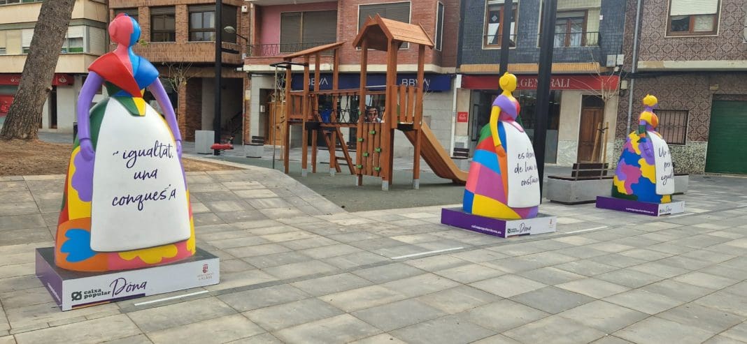 Las seis valencianas, de grandes dimensiones, fruto del arte plástico y llenas de color, están ubicadas en la plaza del Jardí, donde el alcalde, José Miguel Ferris, en su discurso de inauguración de la exposición, ha invitado a todos los vecinos del municipio y de localidades vecinas a «visitar esta exposición y a trasladar estos mensajes a través de las redes sociales, para que llegue al mayor número de personas posible, y que, entre todos, consigamos que realmente cale el mensaje y consigamos, de una vez por todas, una igualdad real y no tengamos que volver a concentrarnos a las puertas del Ayuntamiento, para celebrar un minuto de silencio por una víctima de la violencia machista».