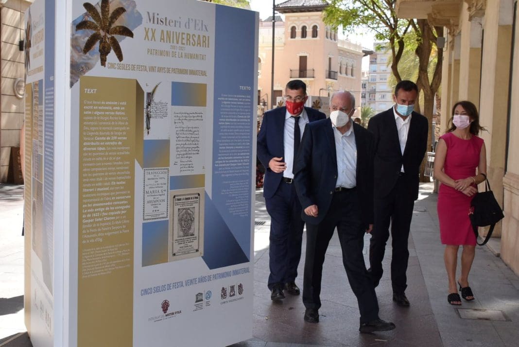 La Corredora ha acogido esta tarde la inauguración de la exposición fotográfica “Cinco siglos de la Festa, 20 años de Patrimonio Inmaterial” con motivo del XX aniversario de la proclamación del Misteri d’Elx como Patrimonio de la Humanidad por la UNESCO. Un acto que ha contado con la presencia del alcalde, Carlos González, el president de les Corts Valencianes, Enric Morera, el presidente de la Junta Rectora Patronato Misteri, Francisco Borja, el embajador delegado Permanente de España ante la UNESCO, Andrés Perelló, la edil de Cultura, Marga Antón, miembros del Equipo de Gobierno y de la Corporación municipal.