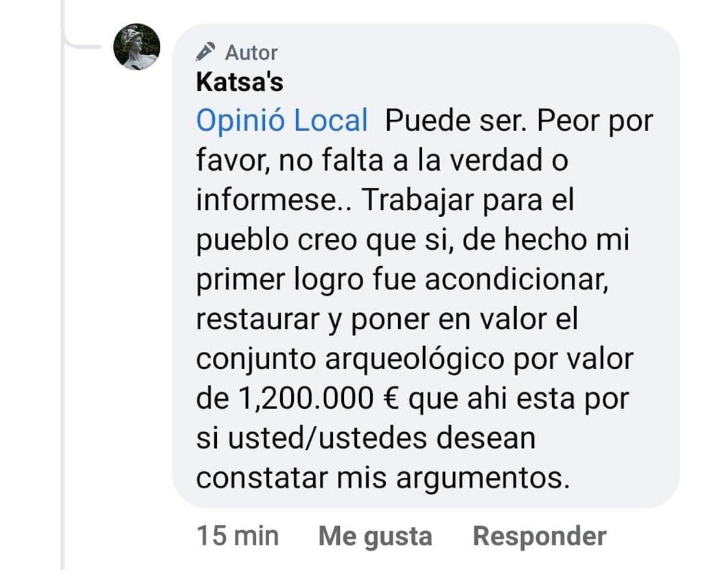 Y llega el momento clave en el que responde a un usuario de Facebook para poner en valor su labor como edil de Cultura, se equivoca  en lugar de contestar desde su perfil político, lo hace desde su cuenta “fake”, revelando así su identidad.