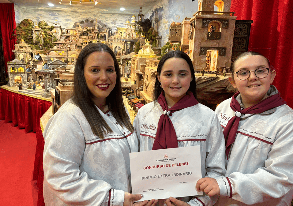 Paula Llobet ha explicado que el jurado del concurso de belenes decidió, por unanimidad, conceder un premio extraordinario al Belén de Reino de Valencia-San Valero, por encima de los premios previstos, “ya que su calidad artística sobrepasaba con creces la media”. Se trata de un conjunto en el que se representan varios ambientes diferentes del pasaje bíblico, como Belén, Nazaret o Egipto, y que incluye numerosos detalles y piezas de ambientación, como la vajilla y las vasijas de cerámica, el suelo de losetas, la recreación de los templos egipcios o judíos, entre otros. “Parece una maqueta de la realidad. Es una joya digna de que la vea toda València”, ha subrayado la concejala.
