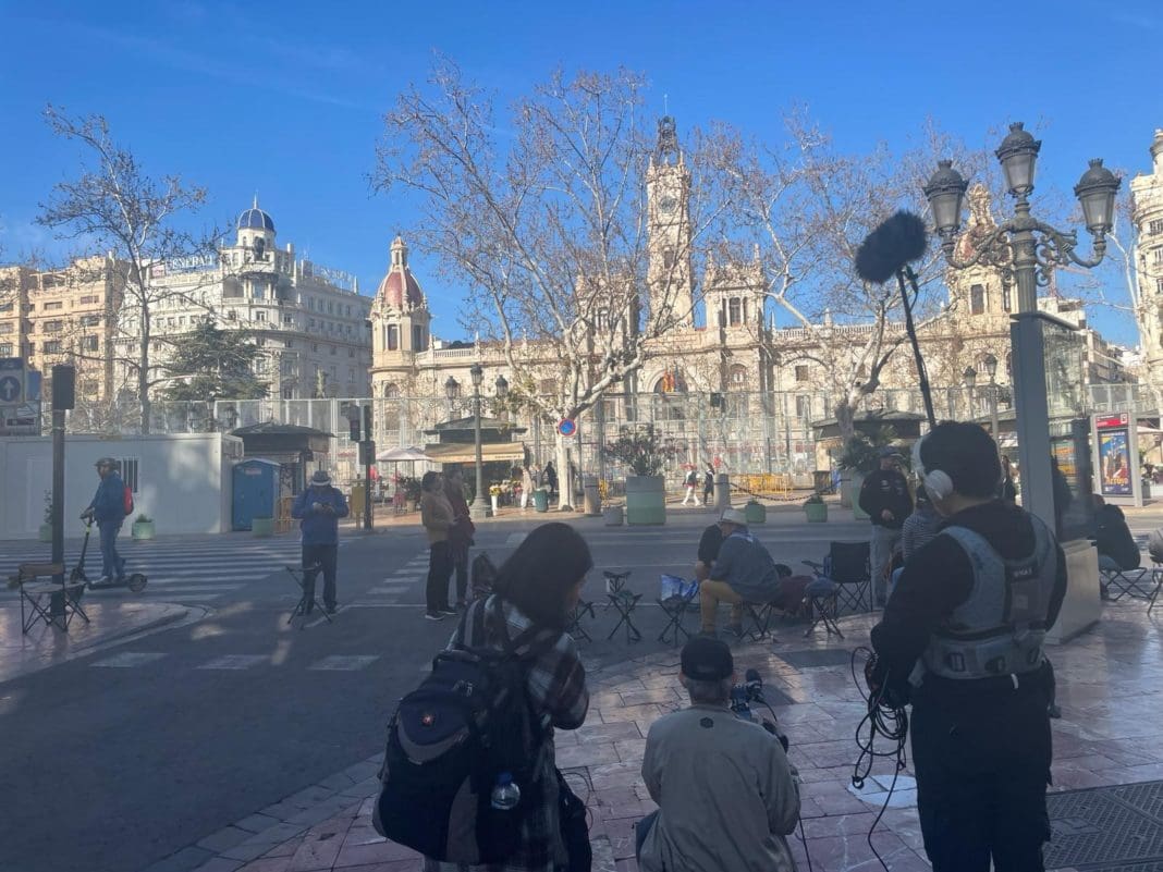17 profesionales japoneses entre técnicos, realizadores, productores, cámaras y directores se encuentran grabando en Valencia desde el 9 de marzo, aunque el trabajo comenzó en noviembre con la localización de los espacios y la programación de entrevistas. El pasado mes de enero ya estuvieron grabando en comisiones, talleres falleros y tiendas de indumentaria valenciana.