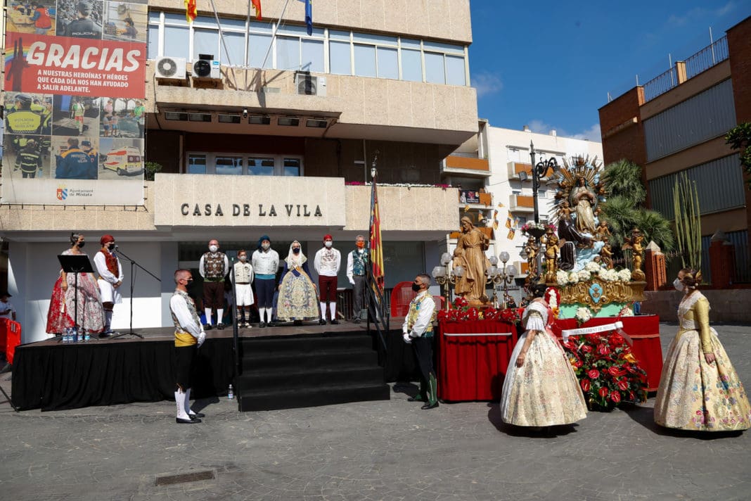 Tras participar en la jornada matutina ayer en la Ofrenda a la Mare de Déu dels Desamparats de Valencia, las comisiones mislateras han cumplido hoy con la tradición de rendir homenaje a la patrona de la ciudad, Nuestra Señora de los Ángeles, y a San José en el último día de la semana fallera. En esta ocasión, y debido a la pandemia, se ha realizado un acto más sencillo, sin público en el recorrido y con mascarillas y distancia de seguridad para cumplir las normas sanitarias, pero no por ello ha sido menos emotivo y especial para los cientos de falleros y falleras de Mislata.
