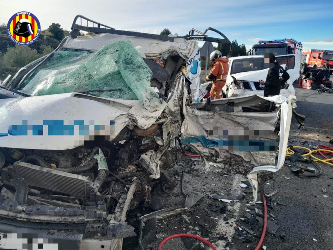 Han actuado dos dotaciones de bomberos de Xàtiva y Ontinyent, y sargentos de Alzira y Gandia. Finalmente los bomberos han conseguido extraer el conductor de la furgoneta, que ha sido atendido por los medios sanitarios, y el del camión, que ha resultado víctima mortal. Los trabajos han finalizado cerca de las 16 h.