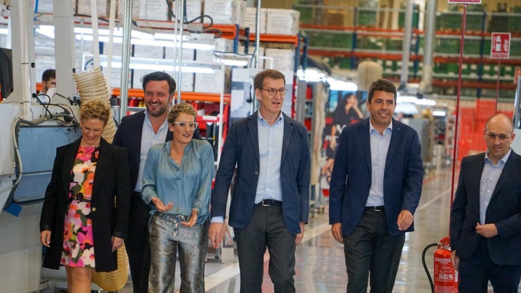 En el día de hoy, el presidente del Partido Popular, Alberto Núñez Feijóo, acompañado por el presidente del PP en la Comunidad Valenciana, Carlos Mazón, y el candidato del PP a la alcaldía de Elche, Pablo Ruz, ha visitado las instalaciones del centro de producción de Pikolinos-Pikokaizen.
