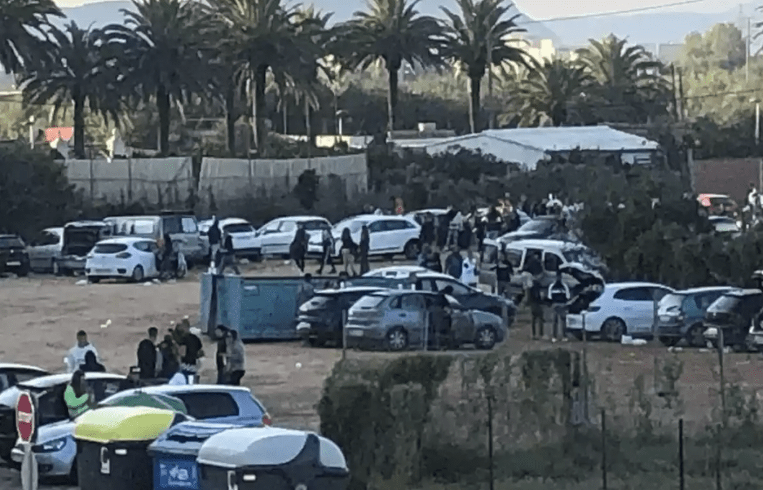 Parece que todo se iniciaba alrededor de las 22 horas, con la llegada de los primeros vehículos y los primeros jóvenes a un solar situado en la calle Riu Sènia de les Palmeres. Los vecinos se temían el peor porque no es la primera vez que ocurría, según han explicado. De hecho, varios propietarios reconocen que el el pasado sábado también se celebró una fiesta similar en este mismo lugar y que, por eso y temiéndose que volviera a ocurrir, telefonearon a la Policía Local de Sueca y a la Guardia Civil advirtiéndolos que se estaban volviendo a concentrar muchos vehículos en esta zona de la ciudad «y no en las afueras donde hay dos aparcamientos habilitados».