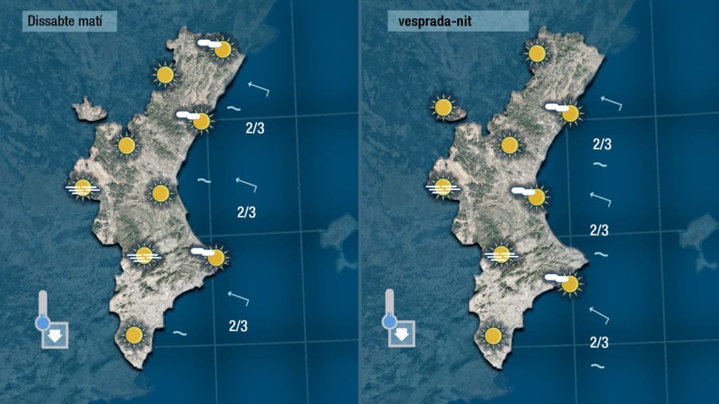 Y mañana sábado daremos la bienvenida a 2022 con pocos cambios. Con algunas nubes bajas en la costa y con la amenaza de las nieblas que podrán formarse en la costa o en las zonas del interior y que habrá que esperar a mediodía para que se deshagan.