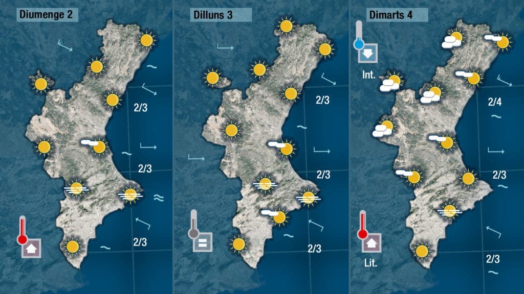 La semana empezará con pocos cambios. El Martes a última hora dejará el cielo más nublado en el norte.