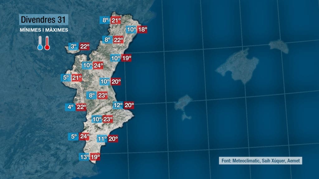 Y mañana sábado daremos la bienvenida a 2022 con pocos cambios. Con algunas nubes bajas en la costa y con la amenaza de las nieblas que podrán formarse en la costa o en las zonas del interior y que habrá que esperar a mediodía para que se deshagan.
