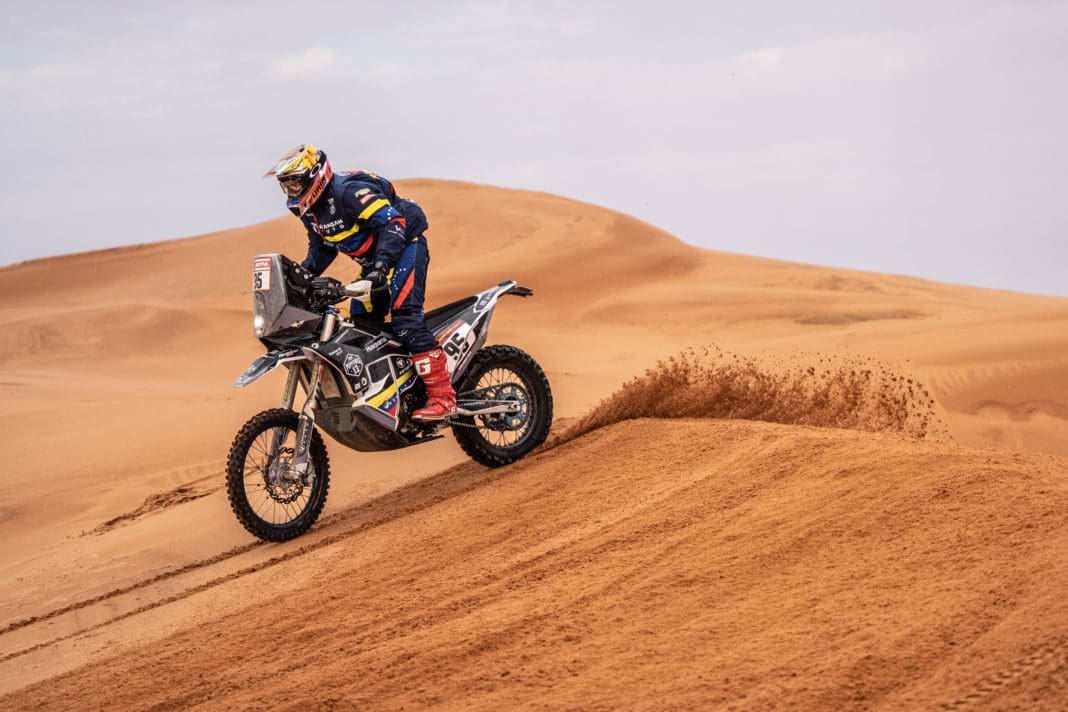 Daniel: “La etapa de hoy ha sido una pasada, nos hemos divertido mucho. Muy dura, mucha piedra y roca, peligrosa, ha habido algunos tramos que nos hemos salido un poco por fuera de pista, porque íbamos muy rápido y las apuradas de frenada eran fuertes. Me ha sorprendido mucho y me he divertido. Estaría bien, mañana, un poquito de arena ya”.