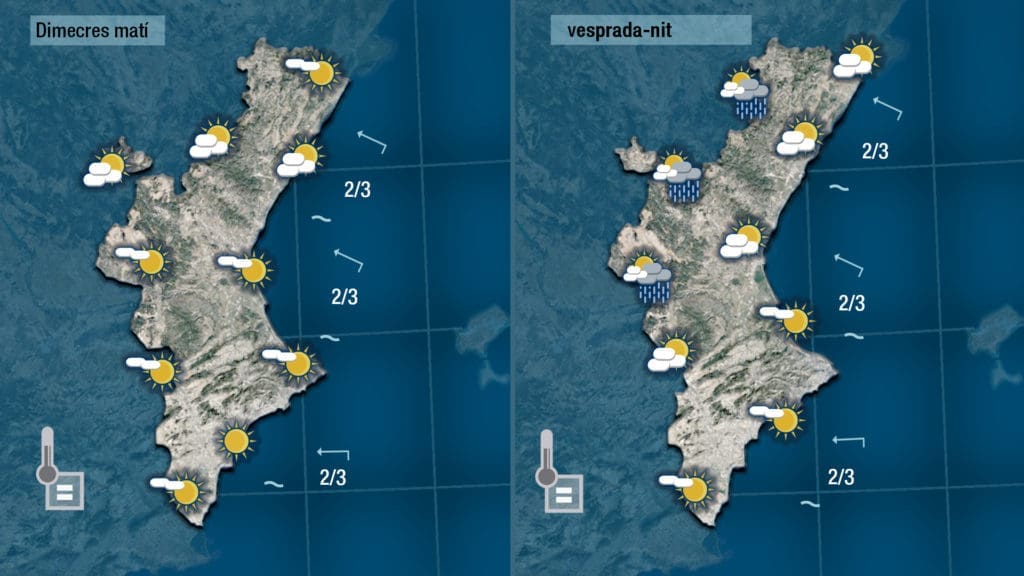 Jueves el día será bastante más fresco y la nubosidad volverá a estar presente a la mayor parte del territorio con nubes más compactas y mayor probabilidad de lluvia en el centro y en el interior.