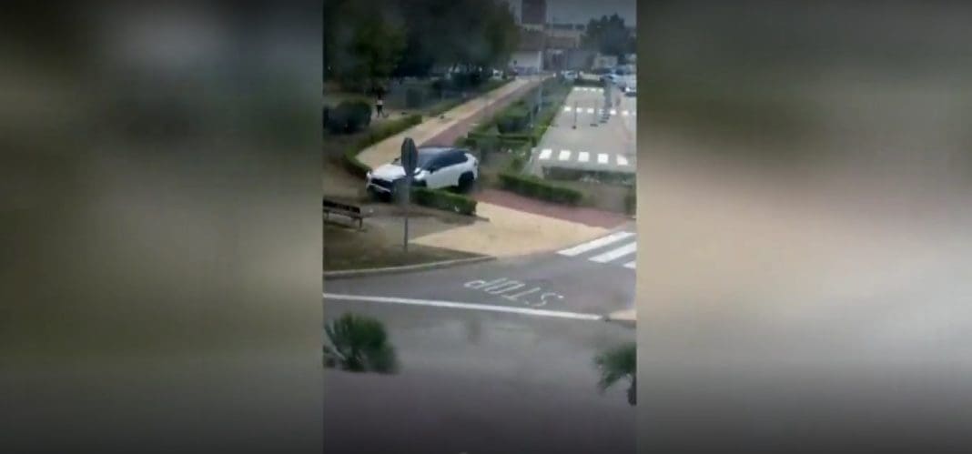 Lejos de amedrentarse, el conductor condujo incluso por un parque cercano introduciendo el vehículo por diversos setos. La escena fue grabada por los vecinos de la zona, que presenciaron incrédulos la escena.
