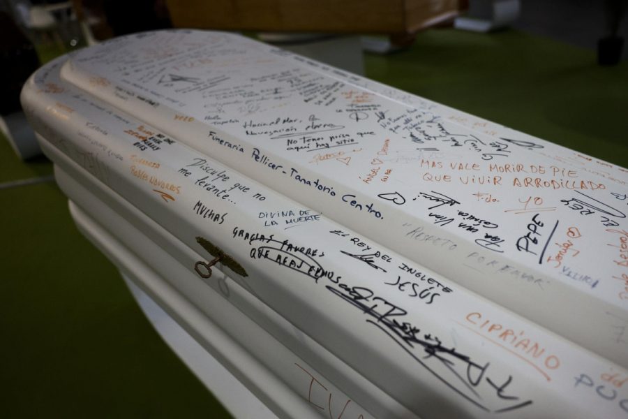 Además, se exhiben alternativas sostenibles en arte floral. Incluyen composiciones de flores secas y preservadas que eliminan el plástico. También hay servicios integrales de localización de herederos y asesoramiento en herencias. Presentan féretros de cartón reciclable, junto a modelos que permiten mensajes de despedida escritos por familiares y amistades.