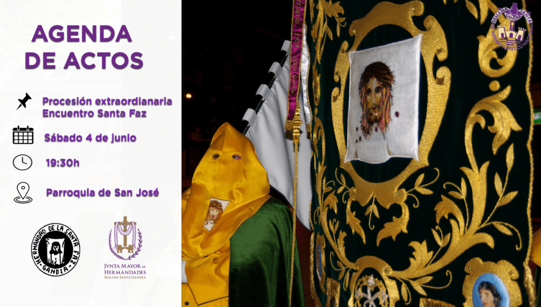 La Hermandad de la Santa Faz de Gandia y la Junta Mayor de Hermandades anuncian que nuestra ciudad contará con una Procesión Extraordinaria con la participación de las Hermandades de Gandia con motivo de la celebración del VII Encuentro Nacional de la Santa Faz que arranca este viernes 27 de mayo.
