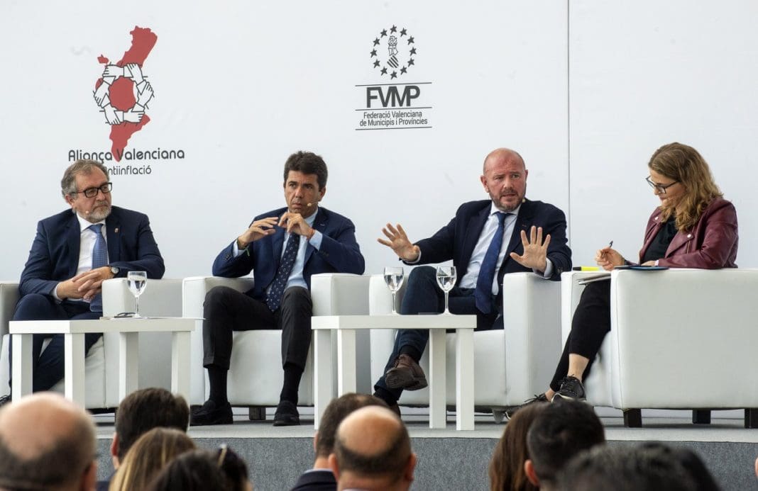 La jornada ‘Alianza Valenciana contra la Inflación’, organizada por la Generalitat con la colaboración de la Federación Valenciana de Municipios y Provincias (FVMP), se ha celebrado en la matinal de este lunes en la Calle Mayor del Museo de las Ciencias, con la apertura del conseller de Hacienda, Arcadi España, la vicepresidenta del Consell, Aitana Mas, y la delegada del Gobierno, Pilar Bernabé, y clausura a cargo del presidente de la Generalitat, Ximo Puig, y su homólogo en la FVMP, Rubén Alfaro.