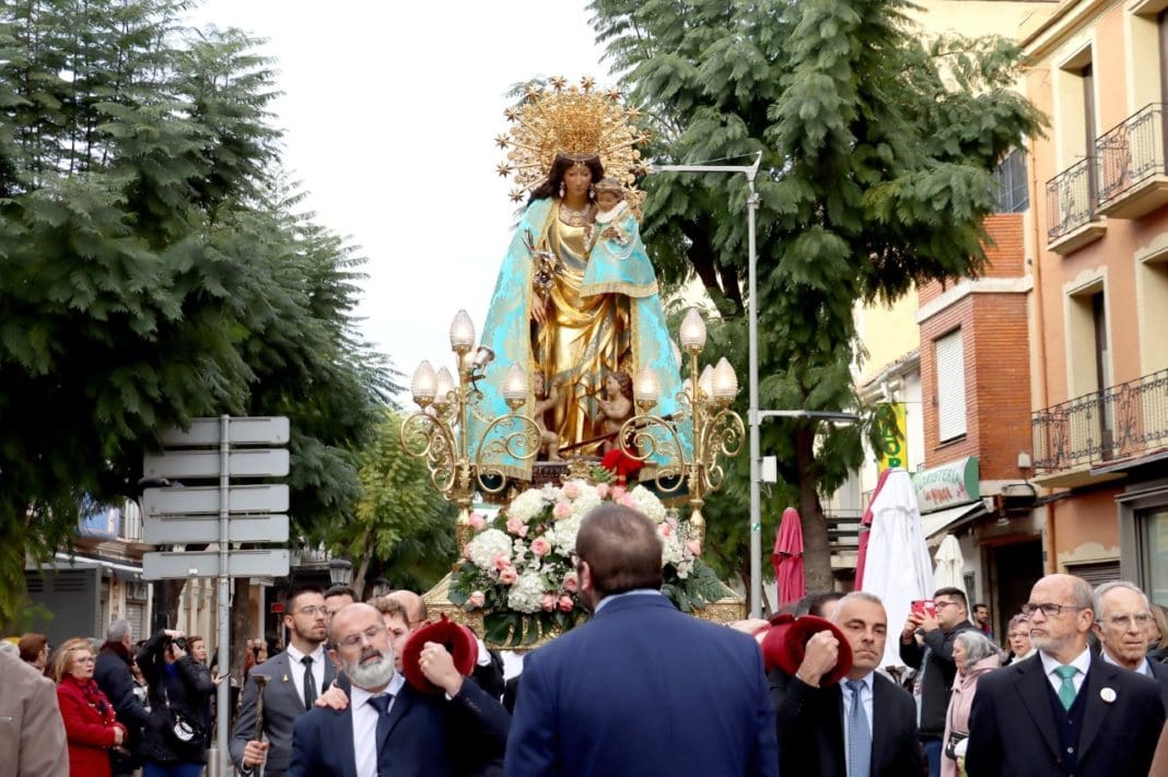 Con motivo del centenario de la coronación de la Verge Pelegrina en el año 1923, la imagen de la Geperudeta recorrió este fin de semana las calles de la ciudad de Torrent, donde fue recibida por los miembros de la Corporación Municipal y el alcalde Jesús Ros, quién le entregó la vara de mando como alcaldesa perpetua de la localidad a su llegada al cementerio parroquial.