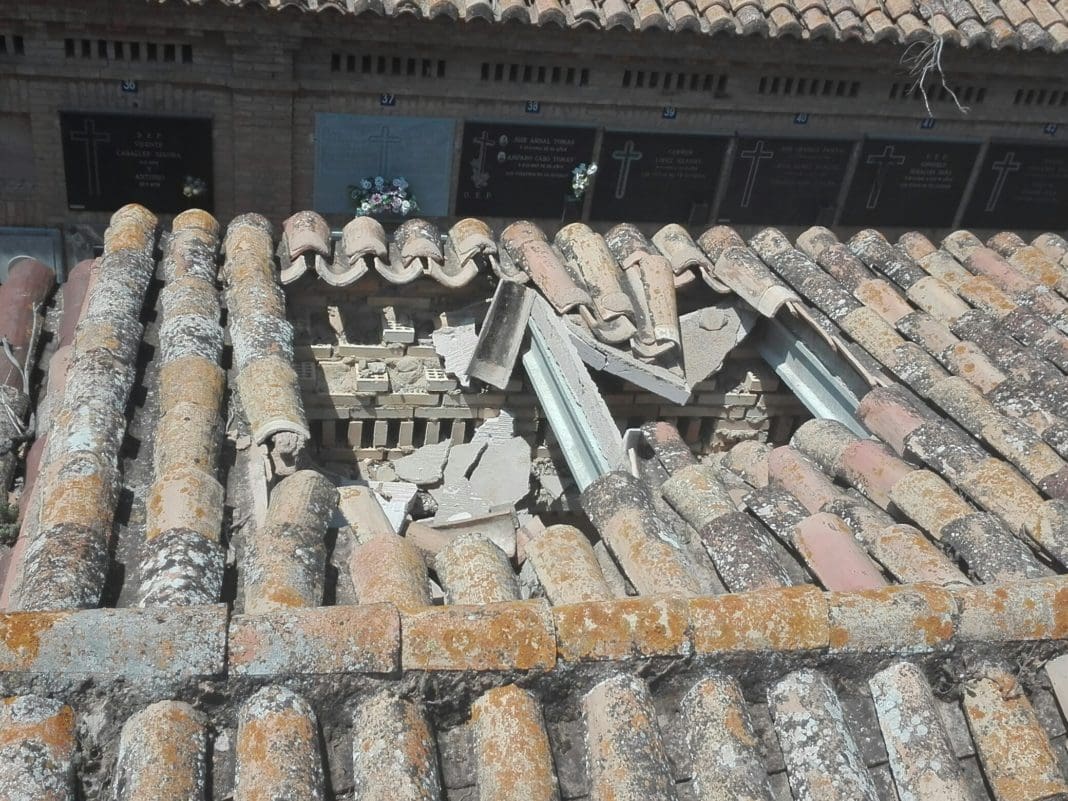 En les zones afectades s’observen enfonsaments de teules en les seues cobertes que, a vegades, han provocat al seu torn l’enfonsament de la part superior dels nínxols. Cal tindre present que estos pavellons de nínxols van ser executats en el seu moment en obra de paleta, és a dir, en nínxols no prefabricats. En qualsevol cas, es tracta de deficiències no estructurals, ja que no s’han detectat trencaments o desplaçaments de cairats.