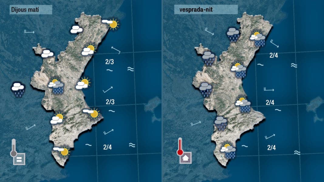 Hay que esperar a mañana para recibir las primeras lluvias del año que sin ser demasiado importantes al venir las nubes desde el oeste podrán dejar algún registro de cierta entidad en las comarcas del interior y chubascos débiles a la costa.