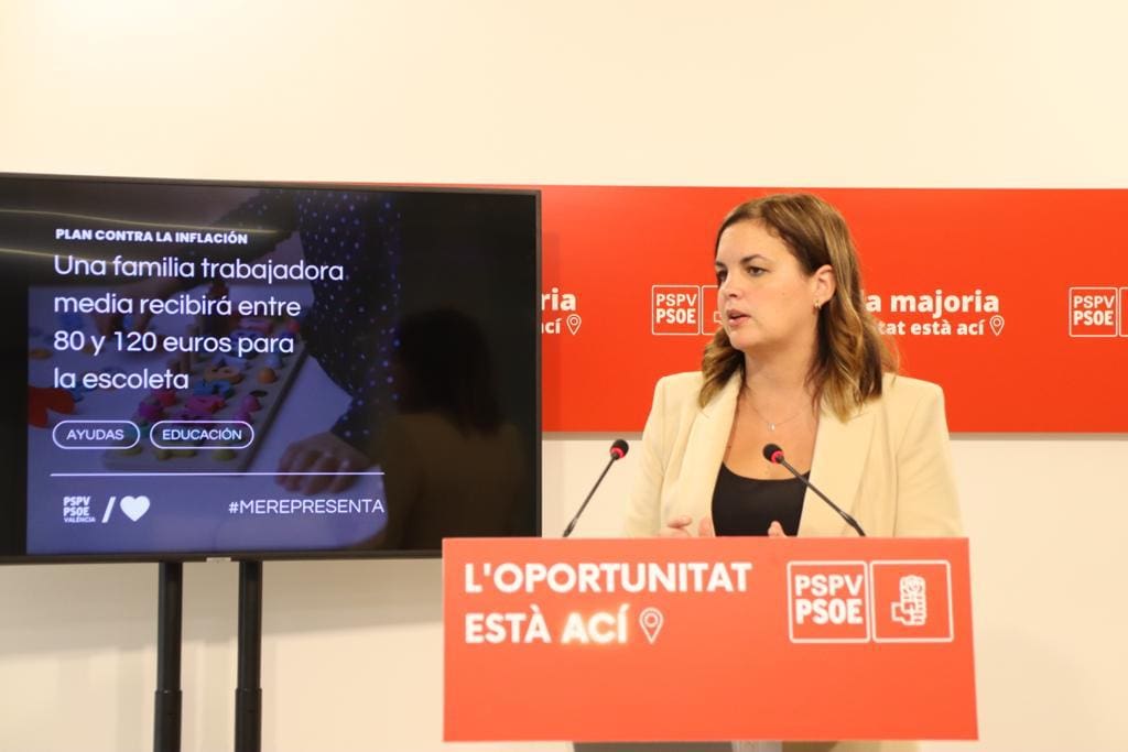 La vicealcaldesa y candidata a la Alcaldía de los socialistas en la ciudad de València, Sandra Gómez, ha presentado esta mañana un plan de ayudas contra la inflación con el objetivo de «mitigar la carga extra que está suponiendo el incremento del coste de la vida para las familias trabajadoras y las clases medias» frente a las iniciativas del PP que asegura «sólo benefician a quien más tiene y a las grandes superficies en detrimento de los autónomos y pymes».