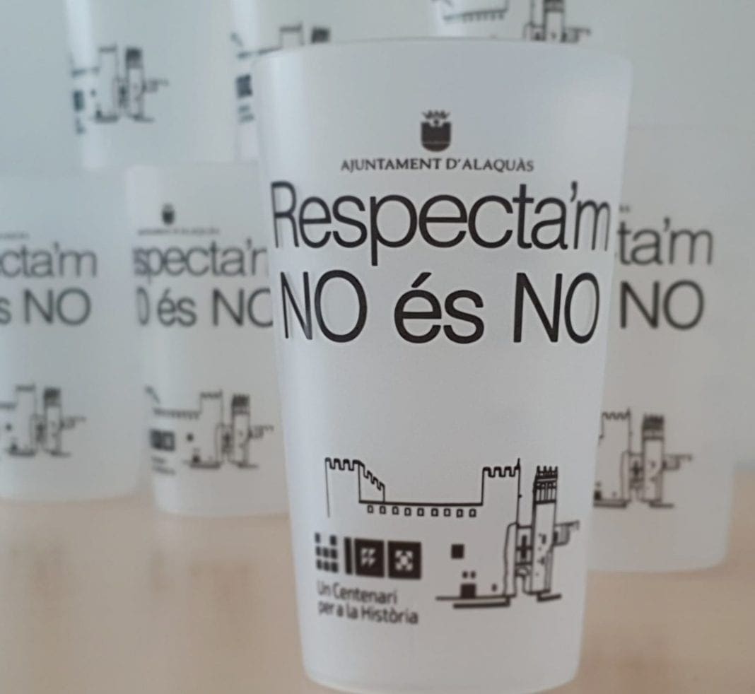 La campanya s’activa al mateix temps que ho fa el Protocol d’actuació local contra la violència cap a la dona. Per això, i aprofitant la celebració d’uns dels esdeveniments de música amb major afluència de públic, el festival Rock d’Alaquàs, el pròxim 1 de setembre aquestos novedosos gots duran serigrafiats un missatge no sexista: Respecta’m: No és no.