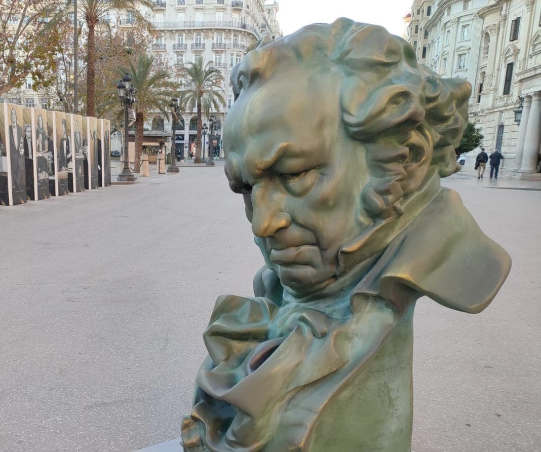 Para celebrar que la capital del Túria acoge por primera vez en su historia esta gran gala, se han instalado réplicas gigantes de la estatuilla de los Goya por varios barrios de la ciudad, todas ellas realizadas por artistas falleros.