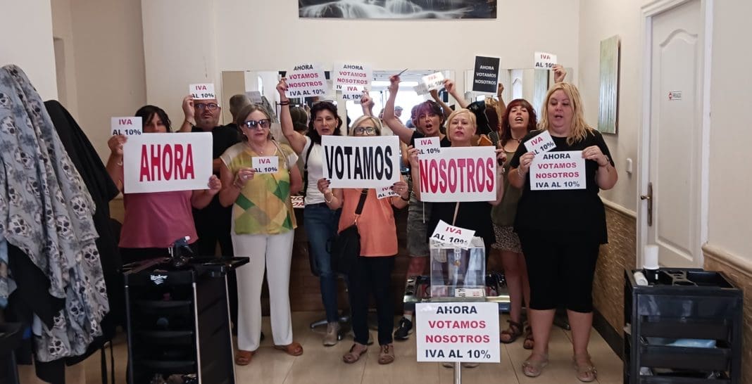 El acto, que ha tenido lugar en un salón de peluquería con la constitución de una mesa electoral con urna y carteles de “Ahora votamos nosotros, ha visibilizado el malestar del sector de la imagen personal y preocupación por la elevada carga fiscal a la que sus pymes está sometidas«.