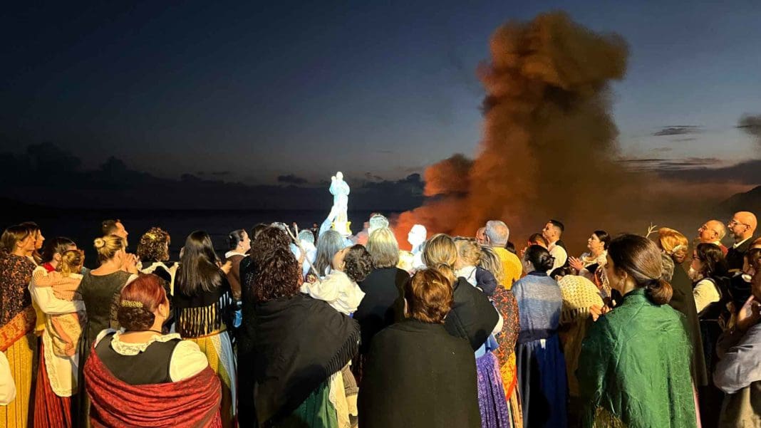 La playa de Poniente acogió, un año más, y ante miles de vecinos y turistas, la recreación del Hallazgo de la Mare de Déu del Sofratge, a cargo de la Asociació Cultural Recreativa ‘La Barqueta’. Una fiesta declarada de Interés Turístico de la Comunitat Valenciana, en la que más de medio centenar de personas rememoraronla llegada de la Virgen a la ciudad.