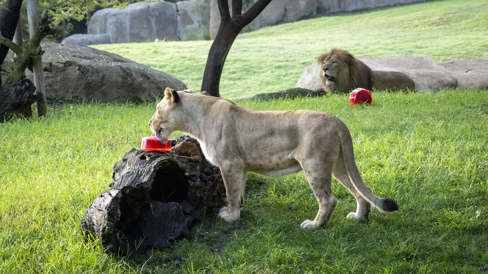 El congelador se ha llenado con sabrosos y naturales helados de todo tipo: enormes bloques de hielo con verduras y hortalizas para elefantes; o de carne cruda y sangre para los más fieros depredadores como leones o leopardos; para los exquisitos primates como gorilas y chimpancés también se incluye fruta y semillas, incluso a los curiosos lémures “mini polos” con muesli.