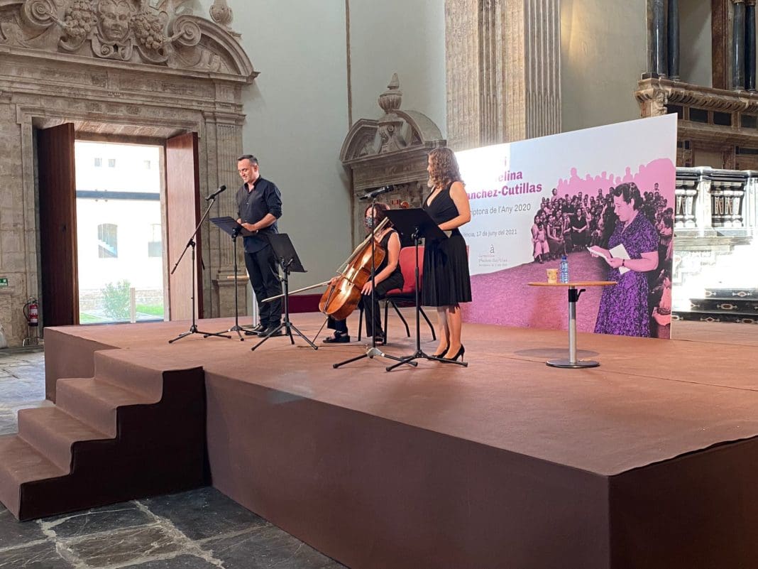 Sánchez Cutillas cultivó la narrativa, la historia, pero también la poesía y durante la conmemoración de los 100 años de su nacimiento, sus versos han llenado las paredes de la iglesia. El recital lo han llevado a cabo las voces de Josep Valero y Marina Mulet, acompañados por la violonchelista Vicenta Carrascosa, sorprendiendo a los asistentes por su emotividad.