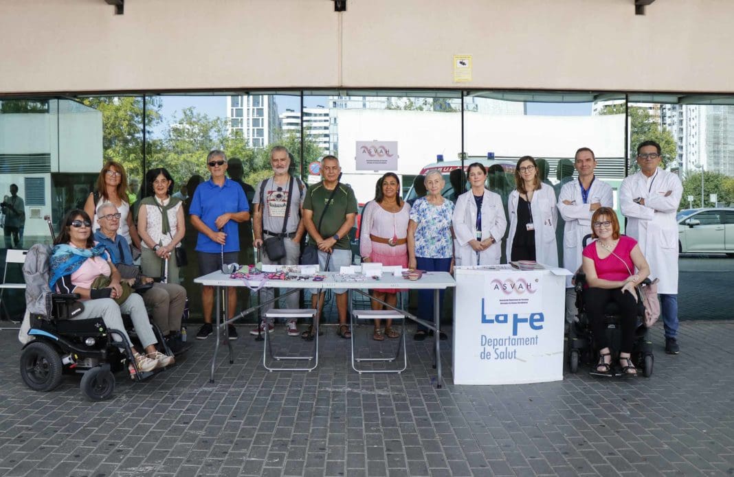 Coincidiendo con el día mundial de esta enfermedad la Asociación Valenciana de Personas Afectadas de Ataxias Hereditarias (ASVAH) ha organizado una mesa informativa en la entrada principal del Hospital La Fe para concienciar sobre esta patología. El gerente del Hospital La Fe, José Luis Poveda, ha visitado esta mesa para conocer de cerca las inquietudes y necesidades de estos pacientes.