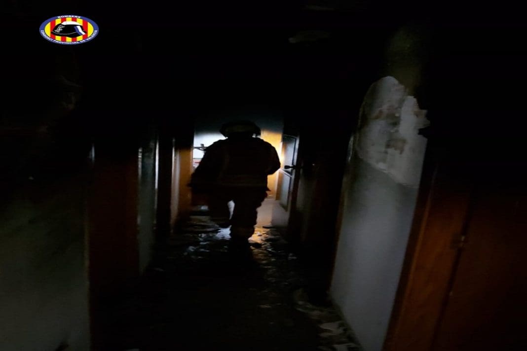 Una mujer también fue atendida por inhalación de humo y fue trasladada al mismo centro hospitalario, en la ambulancia de Bomberos del Ayuntamiento de Valencia.