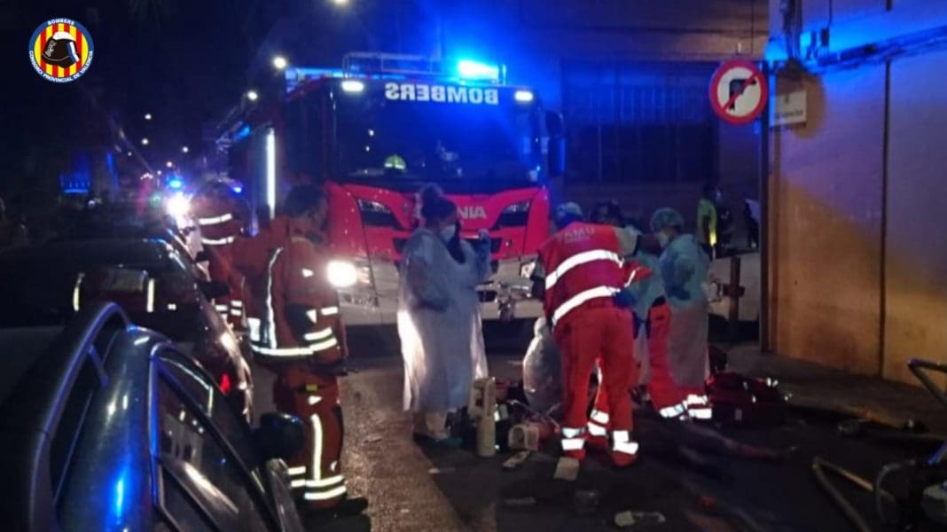 Una unitat de SVB va traslladar a l’hospital La Fe de València a un home de 21 anys amb cremades a les cames i a una dona de 43 anys per intoxicació de fum.