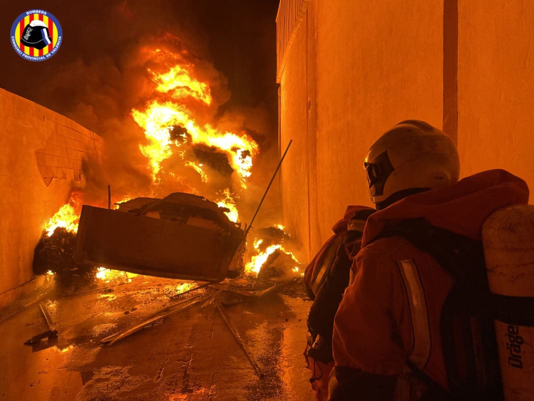El aviso se ha recibido a las 01:51 h de la madrugada, y hasta allí el Consorcio ha movilizado un amplio dispositivo de extinción con siete dotaciones de bomberos de los parques de Paterna, Torrent, Catarroja, l’Eliana, Moncada, Burjassot y Chiva, dos Bombas Nodrizas Pesadas de Paterna y Torrent, autoescalera, sargento de Paterna, jefe de sector y oficial de guardia del Consorcio.