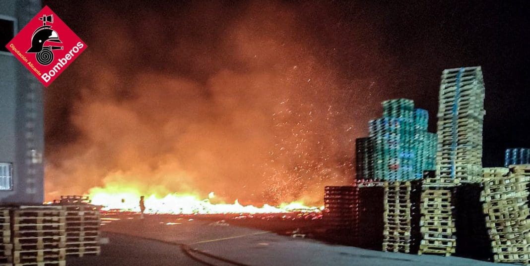 Esta madrugada, entorno a las 1:27 horas, saltaba la voz de alarma por un incendio en el exterior de una fábrica almacén de palets en el Polígono nº1 de Elche.