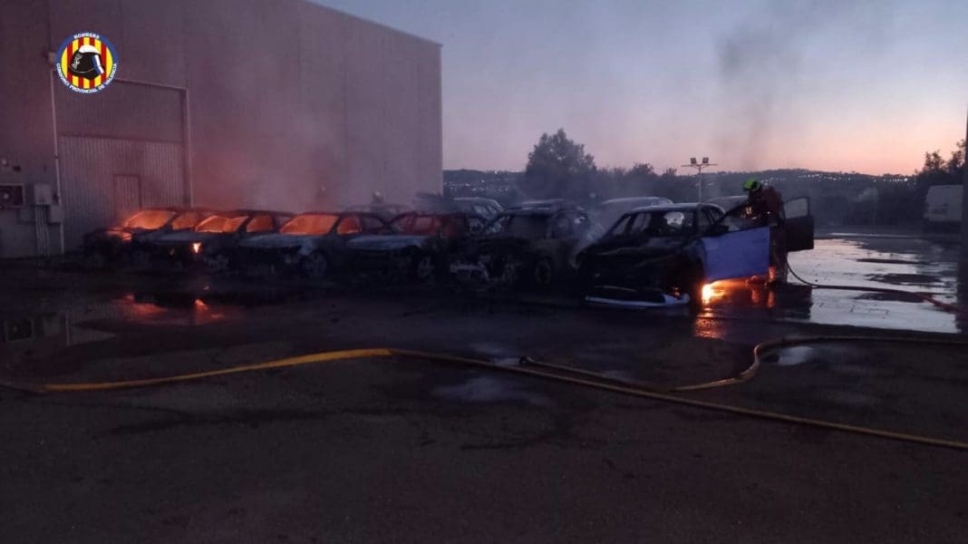 Un incendio afecta a 14 coches de una empresa de automoción en Cheste