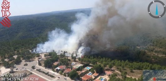 Seis medios aéreos trabajan en un incendio forestal registrado en Moixent