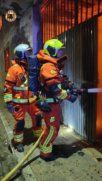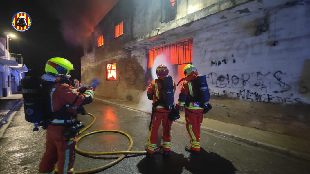 El aviso se recibió a las 21.20 horas, momento en el que se activó un amplio dispositivo de emergencia ante la magnitud del fuego y el riesgo estructural de la nave afectada. Hasta el lugar se desplazaron ocho dotaciones de bomberos procedentes de los parques de Alzira, Silla y Catarroja, así como bomberos voluntarios de Vallada, además de un sargento, un jefe de sector y un oficial.